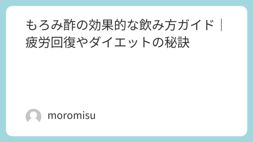 もろみ酢の効果的な飲み方ガイド|疲労回復やダイエットの秘訣